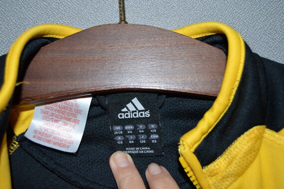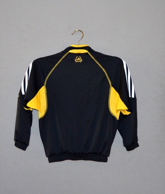 Adidas Kid Windbreaker Gelb Schwarz 3 Streifen Leicht Adidas Zip Bis Jacke Alten Sport Trainingsanzug Jacke Reißverschluss Jumper Größe 8 Jahre