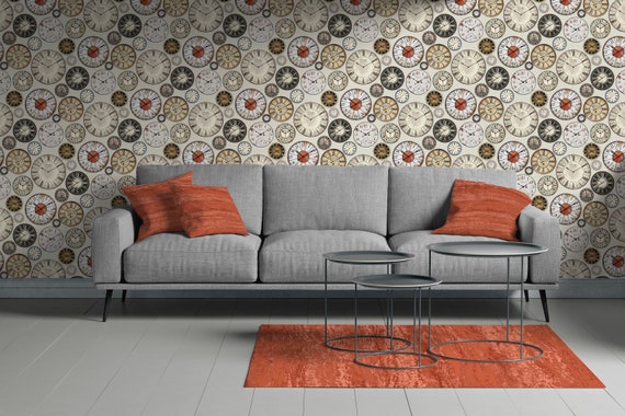 Vintage Clocks Wallpaper Beige Cream Ivory Removable Peel And Stick Self Adhesive Repositionable Reusable Easy Install Woven Temporary Decal