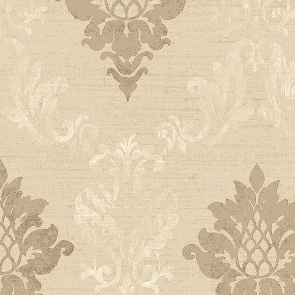 Silk Damask Beige Cream Metallic Gold Im36428 Double Roll