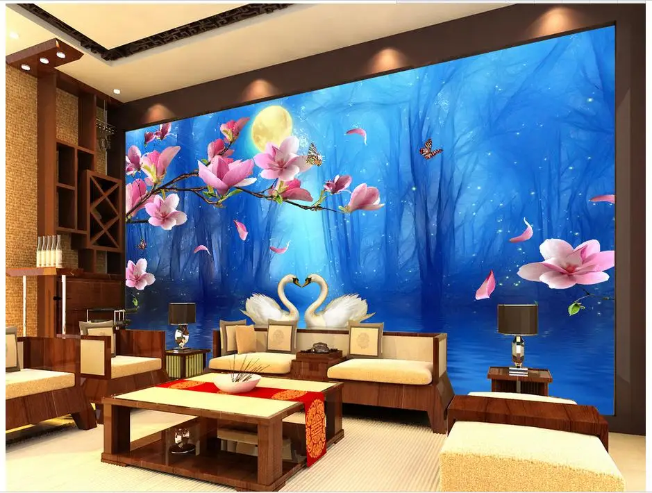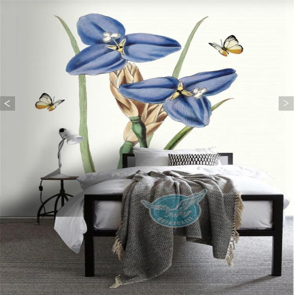 Großhandel Benutzerdefinierte Hd Handgemalte Blaue Orchidee Schmetterling Hintergrund Wandmalerei Fototapete Floral Wandbild Papiere 3d Für Wohnzimmer