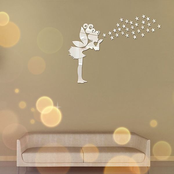 Großhandel Kreative Engel Fee Home Fashion 3d Wandaufkleber Spiegel Ohne Verschmutzung Wohnzimmer Sofa Tv Hintergrund Dekoration Silber Von Sherlyman
