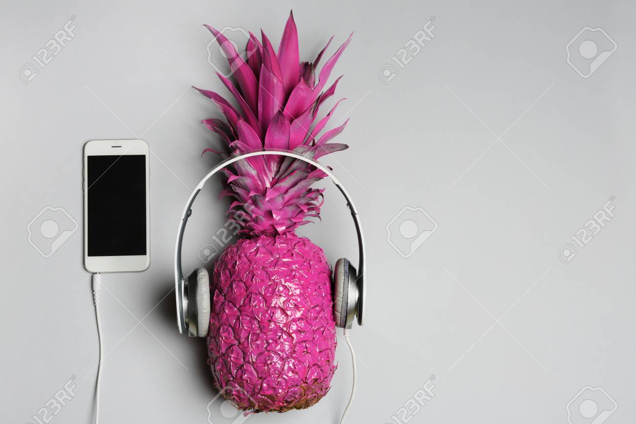 Modeananas Mit Sonnenbrille Kopfhörer Lutscher Vintagekamera