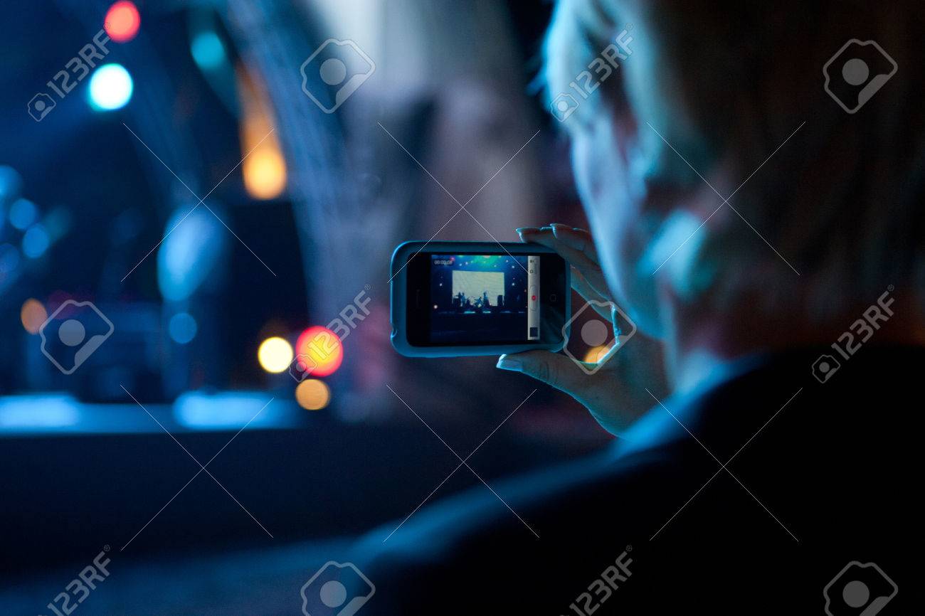 Einen Mann Mit Handy Und Ein Video Von Einem Live Konzert