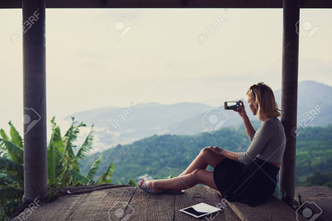 Niedliche Mädchen Blogger Schießt Video Und Selfie Schreibt