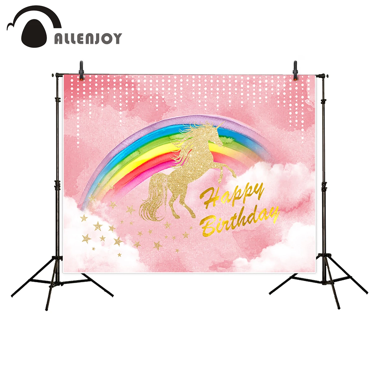 Us 931 33 Offallenjoy Kinder Hintergrund Für Fotografie Regenbogen Sterne Einhorn Blumen Mädchen Glücklich Geburtstag Hintergrund Original Design