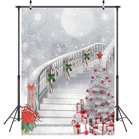 Lywygg 5x7ft Frohe Weihnachten Weihnachtsbaum Fotografie Hintergründe Weiß Fliegenden Schnee Kulissen Weihnachten Treppen Hintergrund Studio Prop