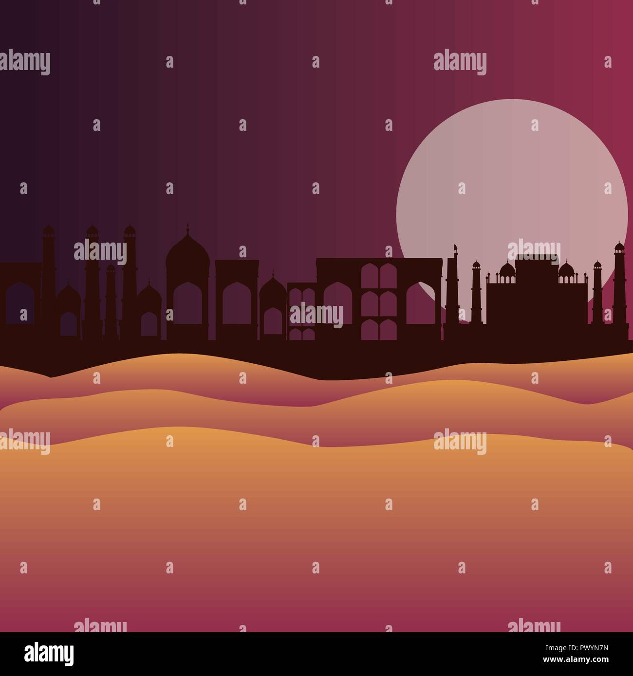 Wüste Mit Stadtbild Krippe Hintergrund Vektor Abbildung