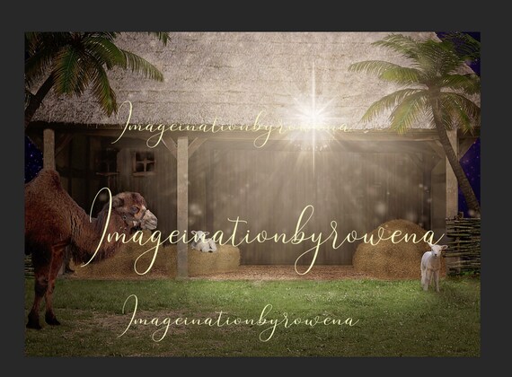 Krippe 4 Versionen Enthalten Digital Hintergrund Digitale Kulisse Weihnachten Digitale Kunst Versorgung Scheune Kamel Schaf Krippe