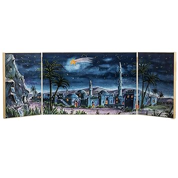 Triptychon Aus Holz Hintergrund Krippe Arabische Landschaft 34x102 Cm