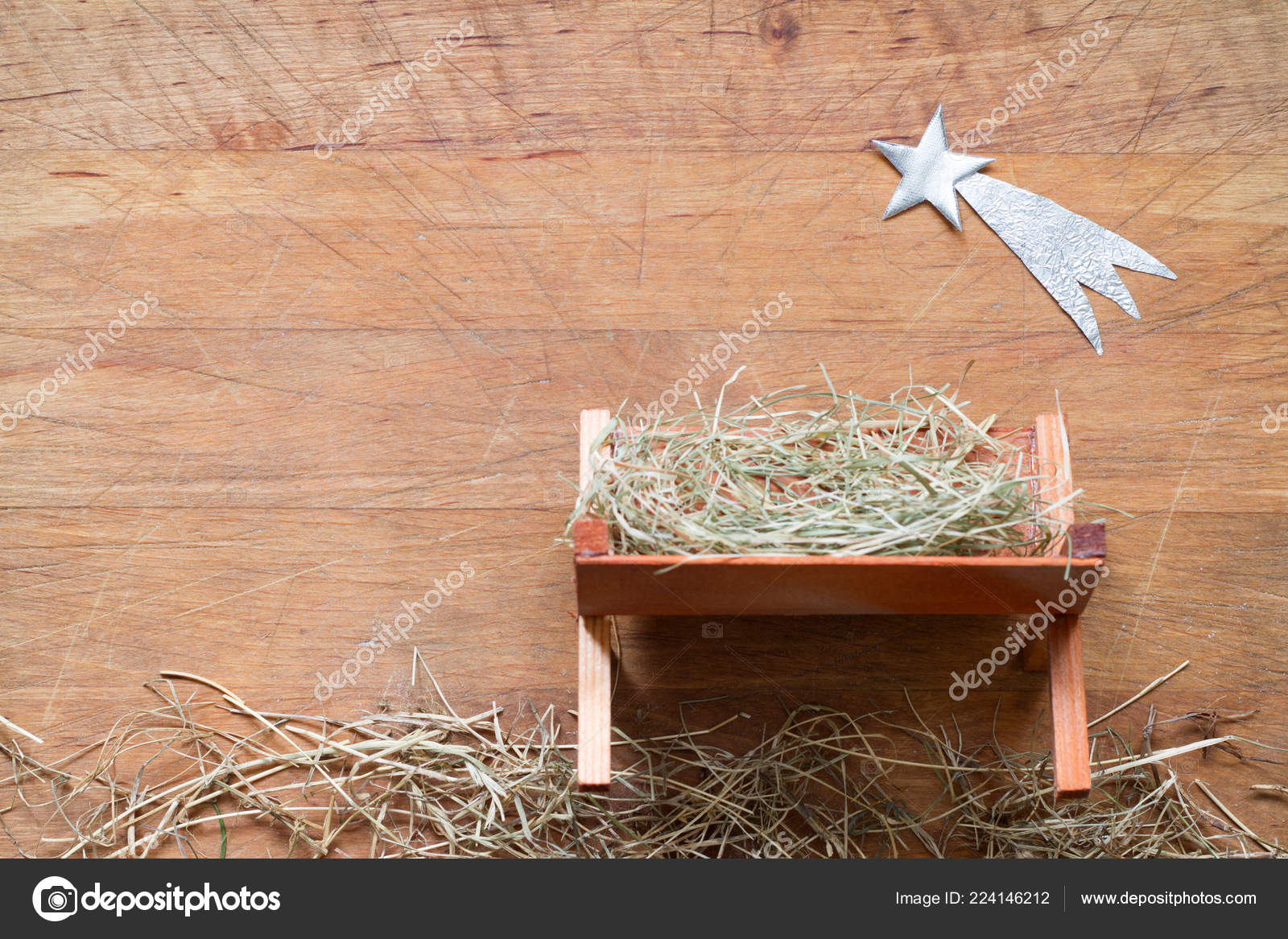 Weihnachten Rustikaler Hintergrund Mit Krippe Stockfoto