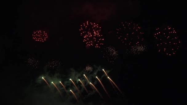 Schöne Rote Orange Mit Laser Feuerwerk Am Nachthimmel Winter In Silvester Neujahr Rich Feuerwerk Als Urlaub Hintergrund Für Silvester Oder Weihnachten 3d Animation Pyrotechnischen Licht Show Mit