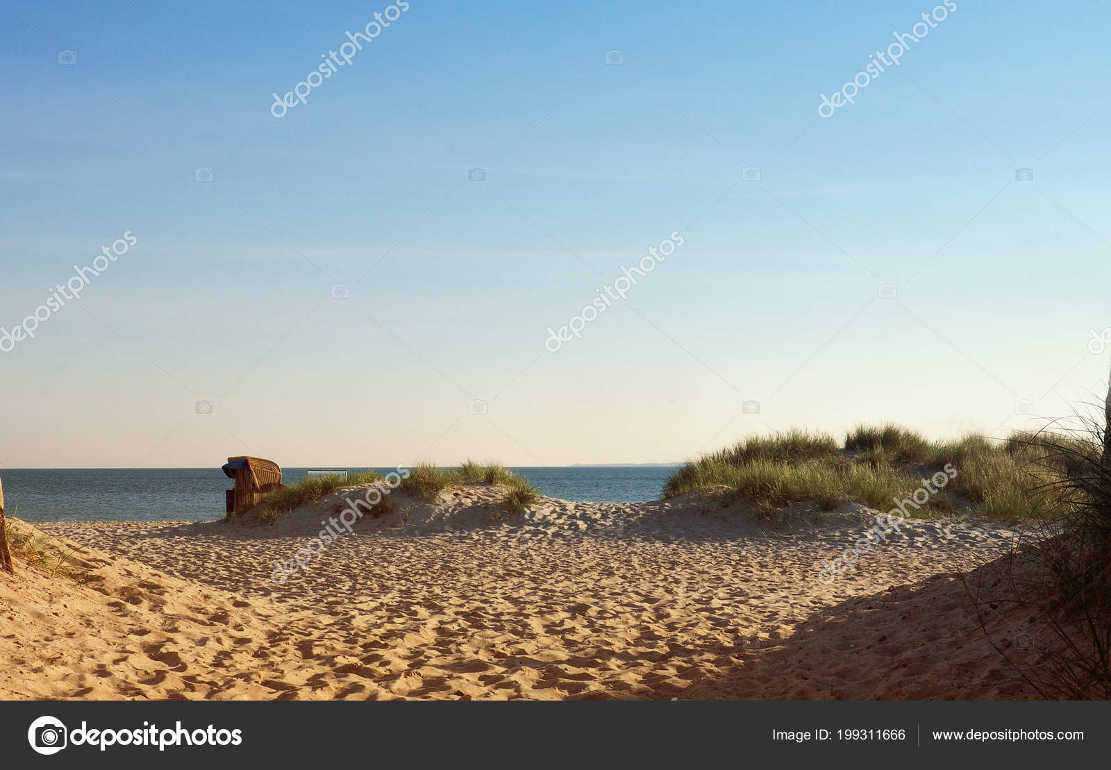 Strandkorb Einem Leeren Strand Der Abendsonne Der Ostsee