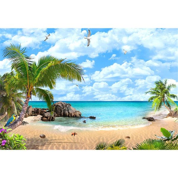 Großhandel Küsten Szenische Fotografie Hintergrund Palme Blauer Himmel Seemöwe Sommerferien Strand Themenorientierter Hochzeits Party Passfotoautomat