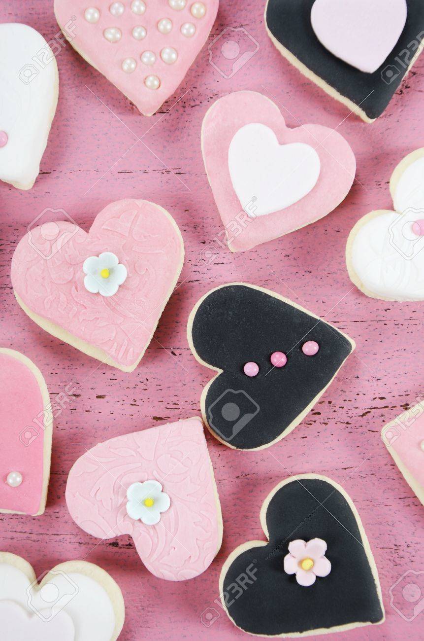 Rosa Herzen Form Auf Schwarz Valentinstag Vektor