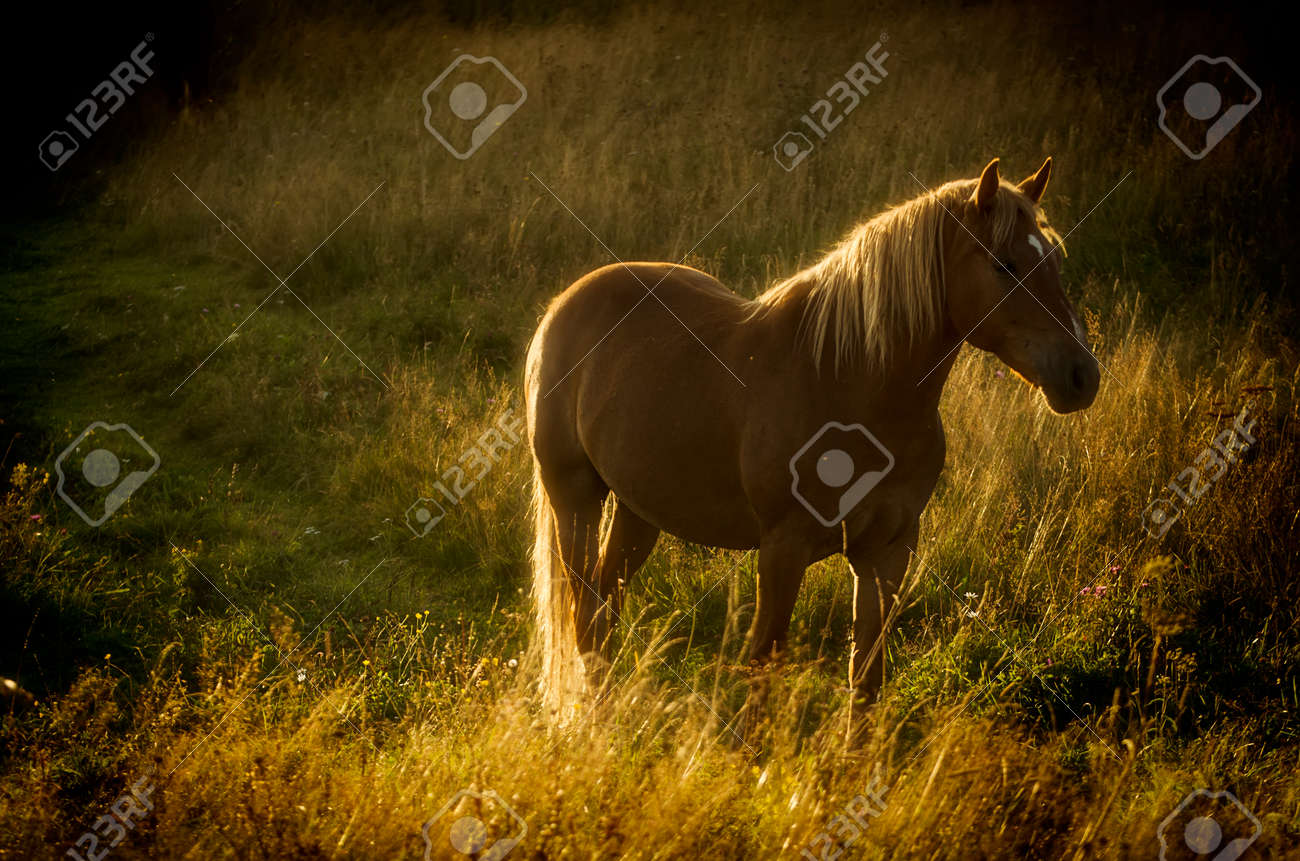 Pferd Auf Sonnenuntergang Hintergrund Clipart K1932225