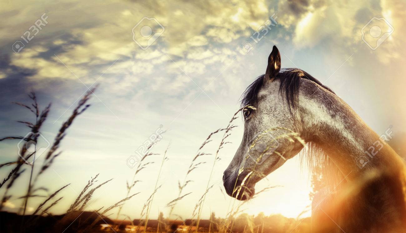 Araber Pferd In Sonnenuntergang Stock Foto K7268748