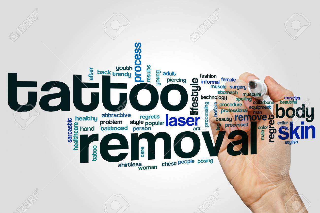 Tattoo Entfernung Wort Wolke Konzept Auf Grauem Hintergrund