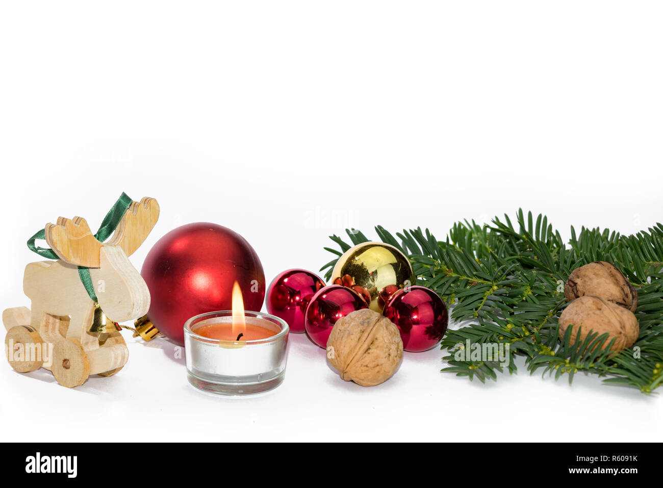 Weihnachten Tier Abbildung Mit Kerze Und Roten Kugeln Gegen