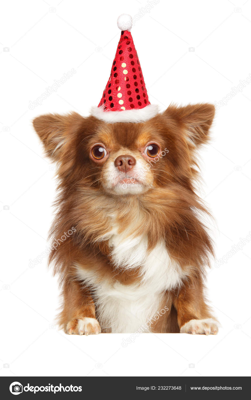 Chihuahua Welpe Santa Rot Hasse über Banner Isoliert Auf