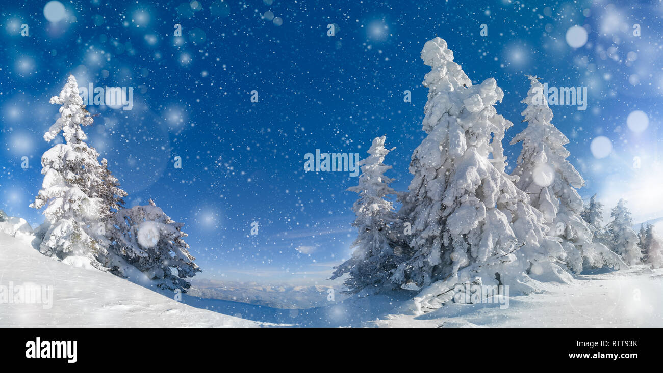 Winter Panorama Abstrakt Hintergrund Fallender Silber Landschaftsbild Schneeflocken