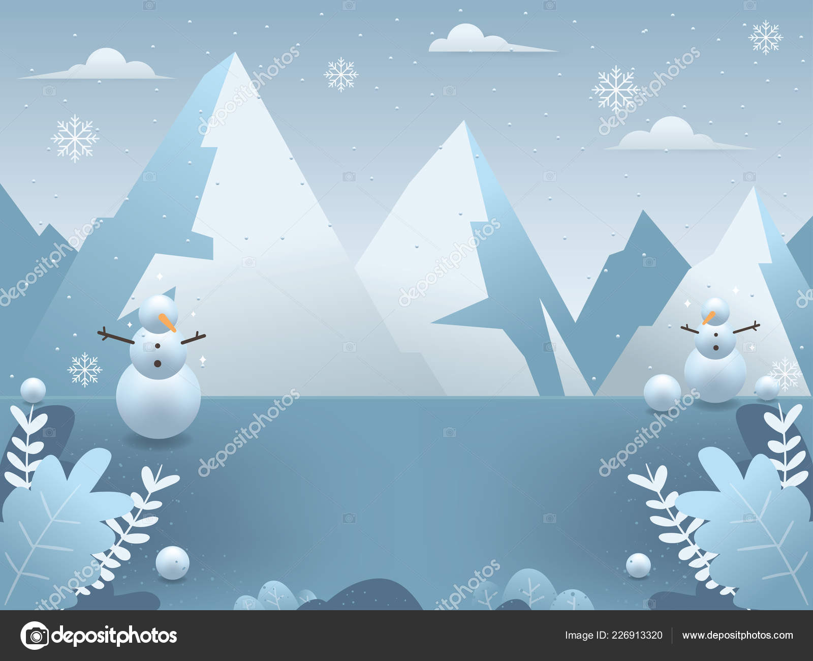 Fototapete Winter Hintergrund Mit Einem Schneemann Schnee Und Schneeflocken
