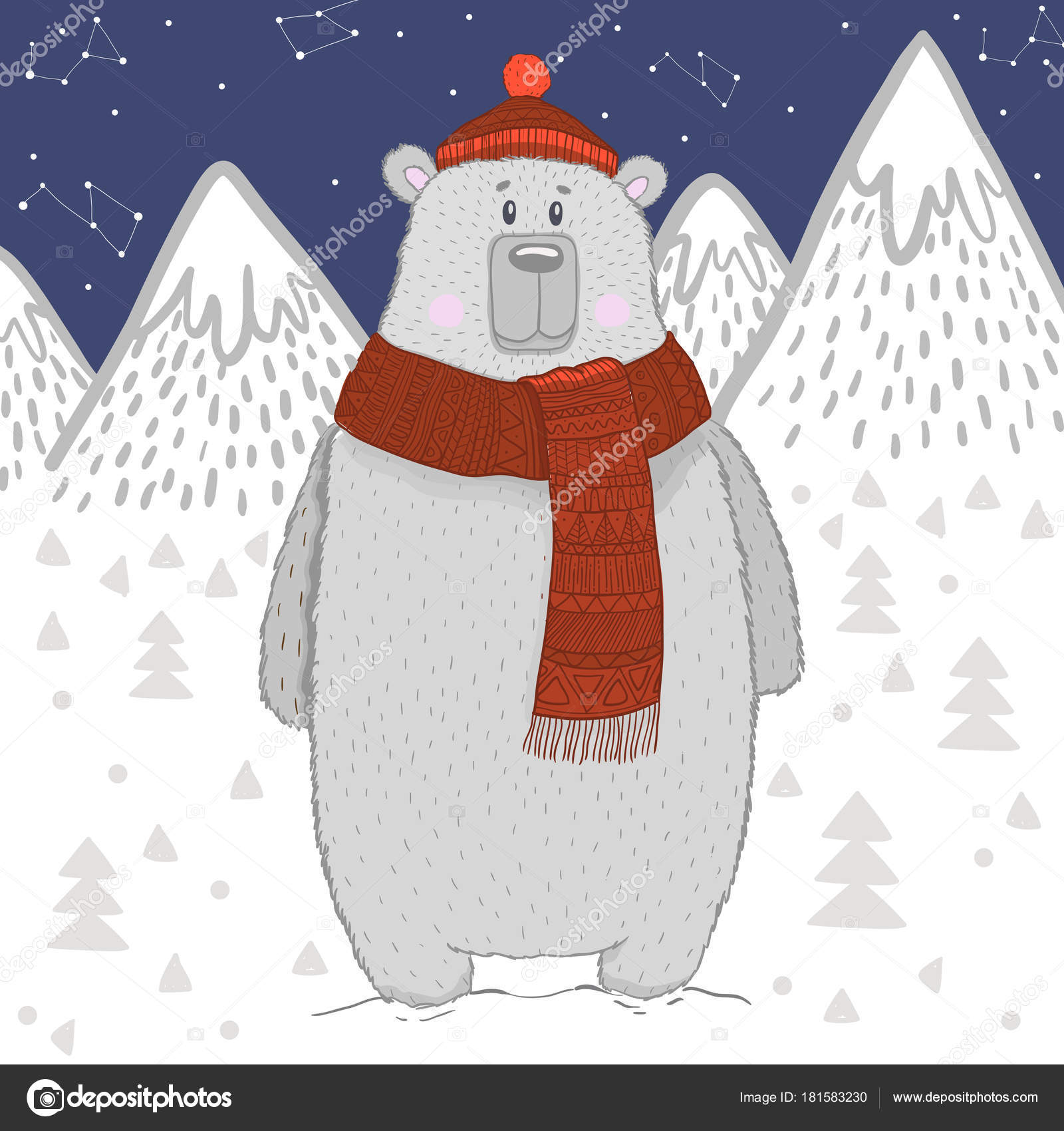 Cute White Bear Schaltung Vor Dem Hintergrund Der Berge