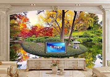 Xli You 3d Tapete Fresko Herbst Parks Teich Bäume Sträucher