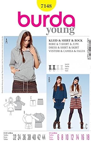 Burda Damen Schnittmuster 7148 Trainingsanzug Hoodie Kleid