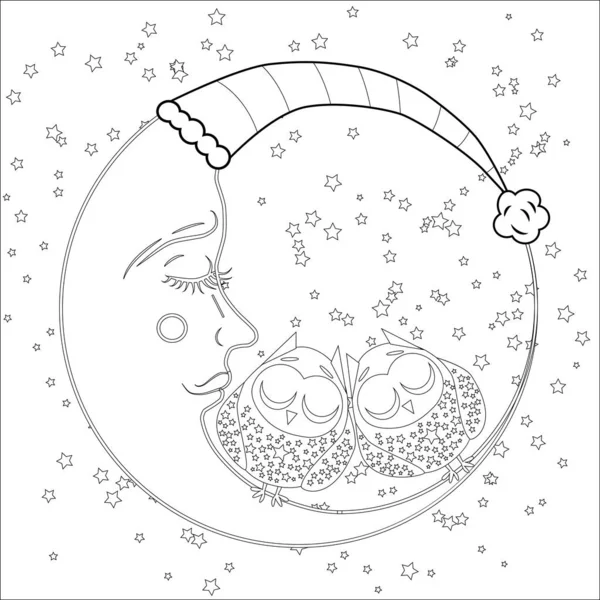 Malbuch Für Erwachsene Und ältere Kinder Malvorlagen Mit Einer Eule Auf Dem Mond Unter Den Sternen Stock Vektor Art Und Mehr Bilder Von Ausmalen