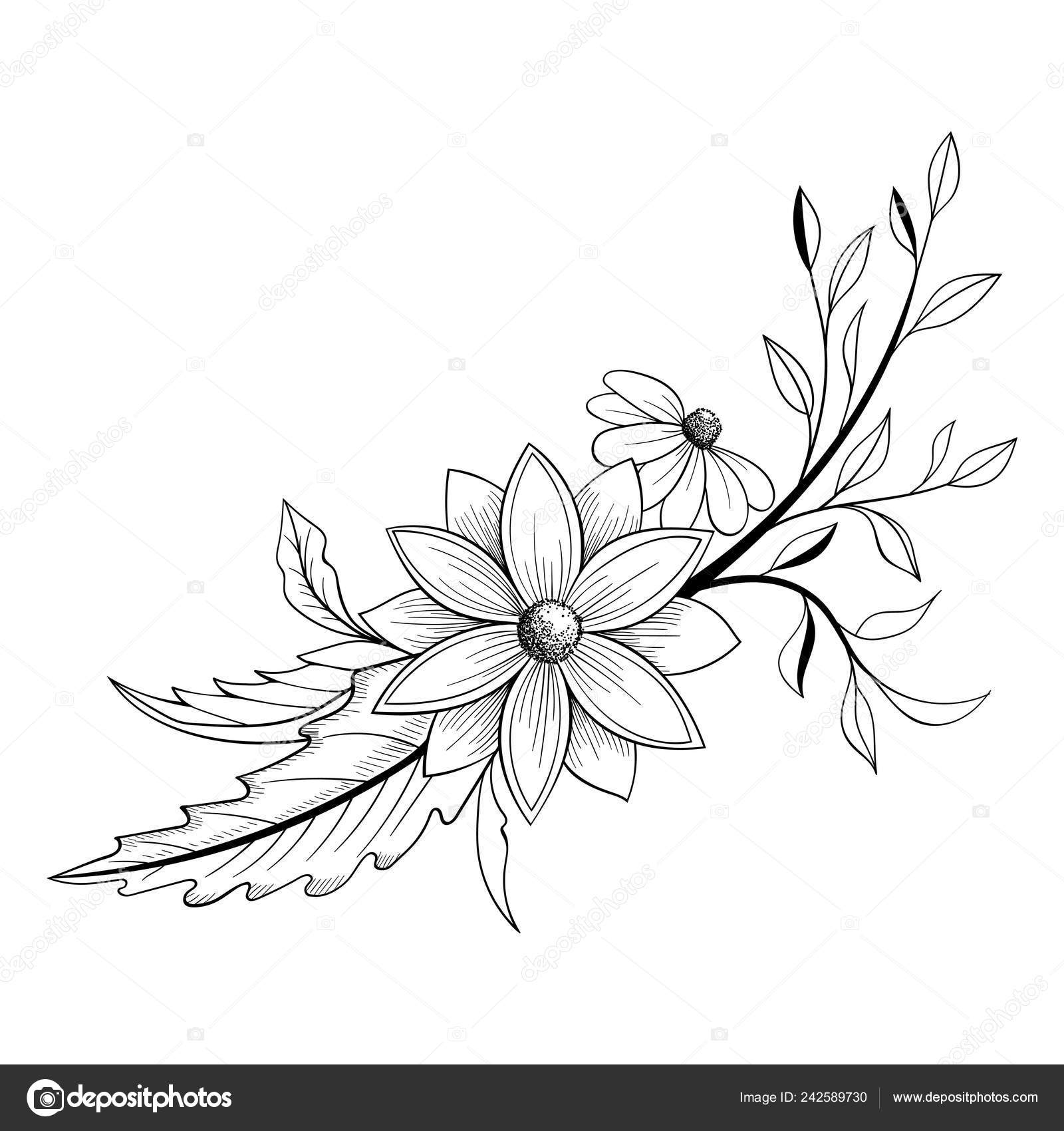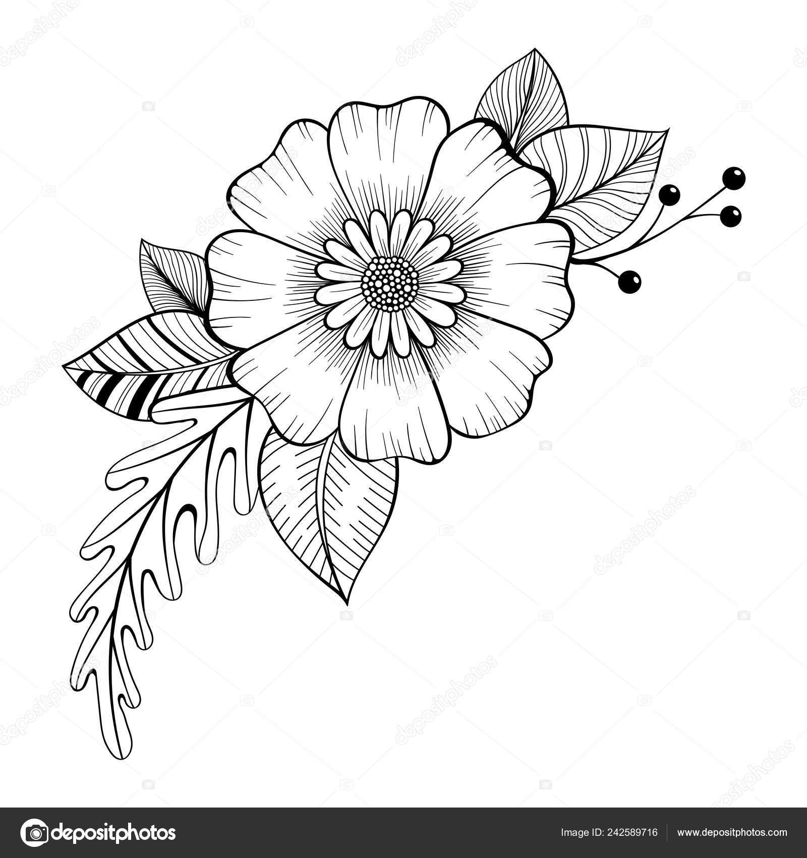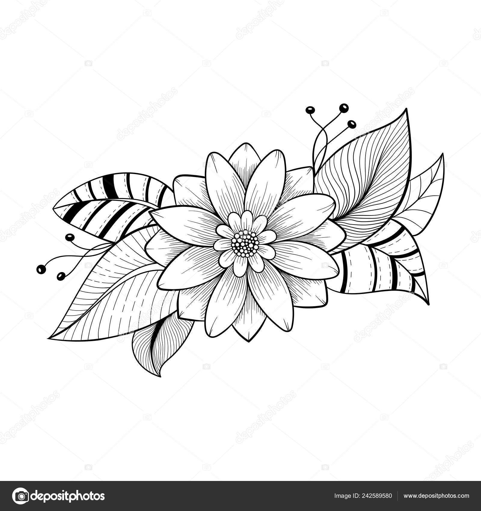 Hand Gezeichnet Doodle Florale Element Sammlung Blumenstrauß Für Malvorlagen Festgelegt Dekorative Florale Element Gesetzt Ideen Für Tattoo Stock