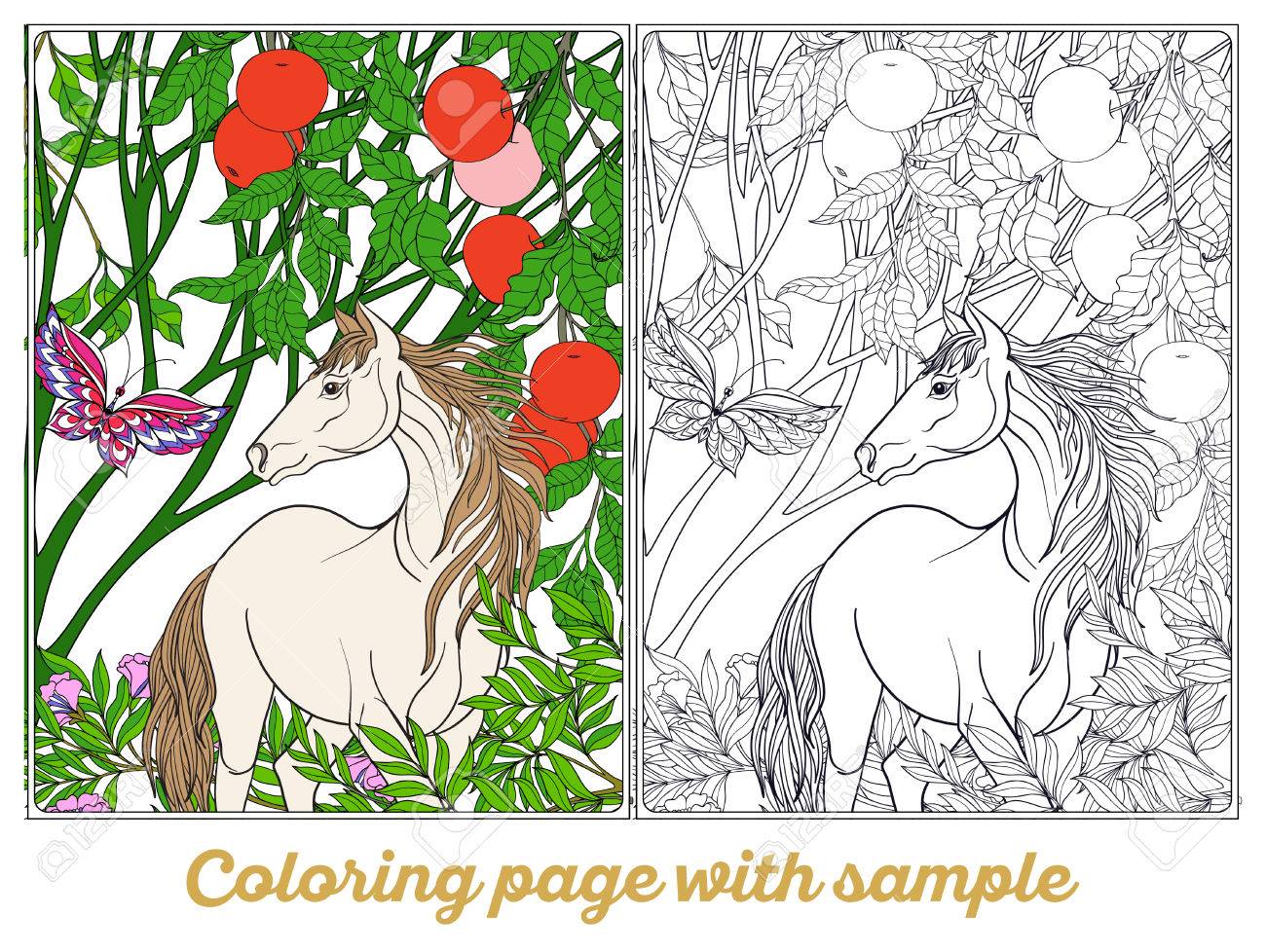 Hand Gezeichnet Für Erwachsene Malvorlagen Mit Pferd