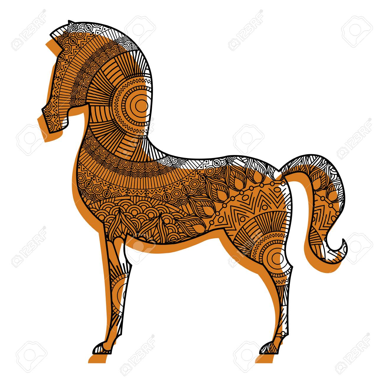 Hand Gezeichnete Zentangle Zierpferd Für Erwachsene