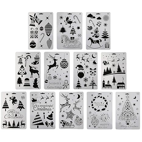 12 Stück Kunststoff Malschablonen Mit Weihnachtsmotiven Weihnachtsmann Schneemann Weihnachtsbaum Schnee Elch Klingelglocke Malvorlagen 254 X