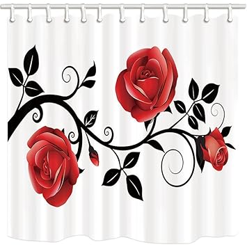 Blumen Duschvorhang Prägnante Art Rote Rosen Schwarz