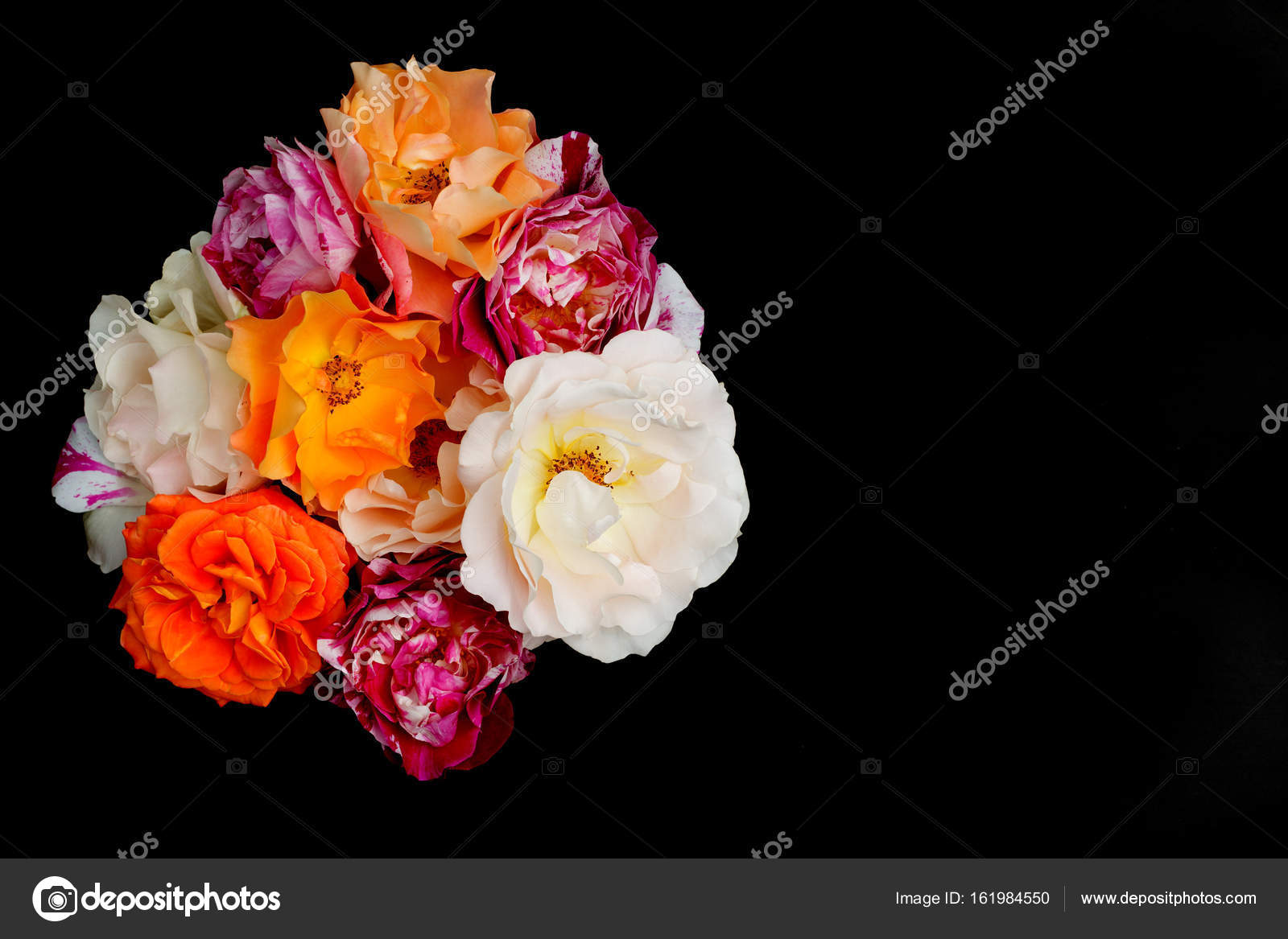 Bukett Von Rosen Schwarzen Hintergrund Flach Zu Legen