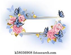 Rechteckig Spruchbaender Mit Rote Rosen Clipart