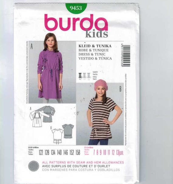 Kinder Nähen Schnittmuster Burda 9453 Mädchen Junioren Einfach Kleid Und Tunika Tunnelzug Größe 7 8 9 10 11 12 13 Ungeschnitten