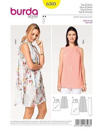 Burda 6503 Schnittmuster Top Und Kleid Mit Schrägen Falten