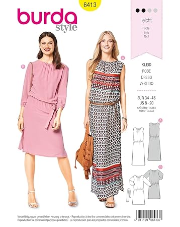 Burda 6413 Schnittmuster Kleid Damen Gr 34 46 Level 2 Leicht