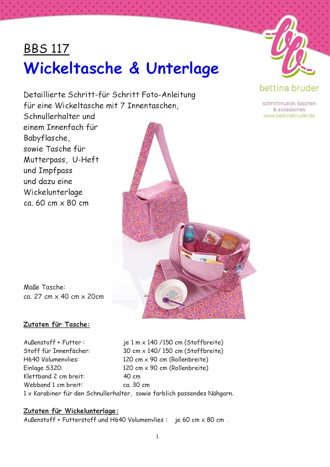Nähanleitung Und Schnittmuster Elena Wickeltasche Und Wickelunterlage
