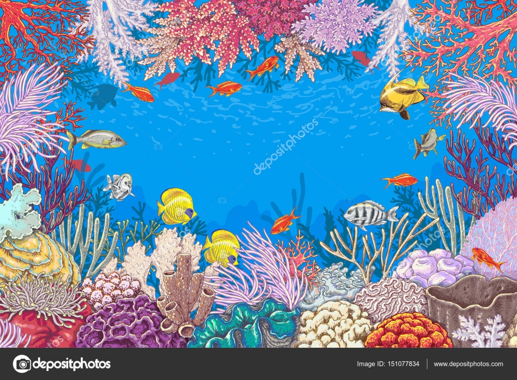 Unterwasser Hintergrund Mit Meer Pflanzen Korallenriffe Und