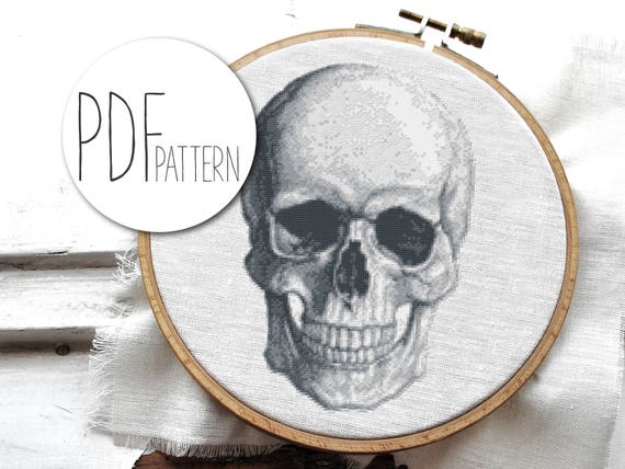 Anatomical Skull Cross Stitch Pattern Modern Black And White Embroidery Human Head Anatomy Xstitch Design Pdf For Instant Download
