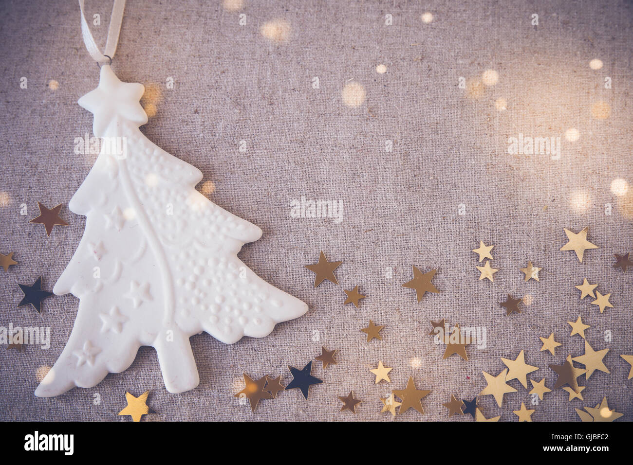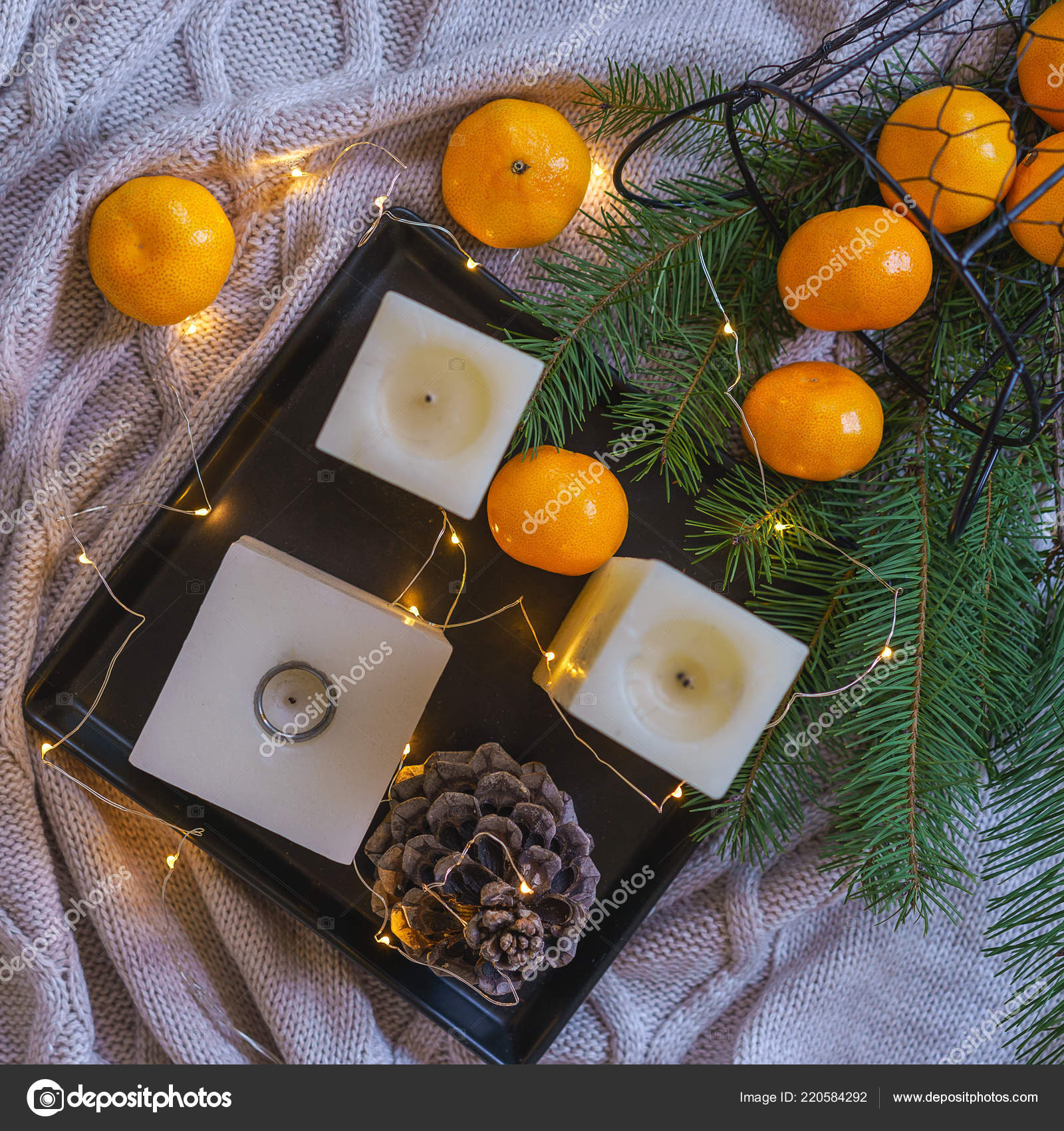 Laterne Unter Baum Zu Weihnachten Winterhintergrund