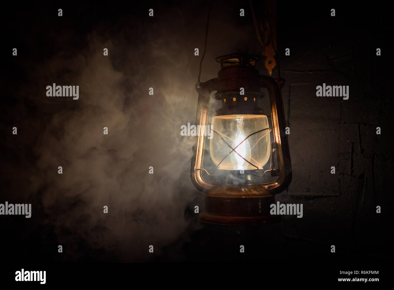 Vintage Laterne Auf Einem Dunklen Hintergrund Rauch