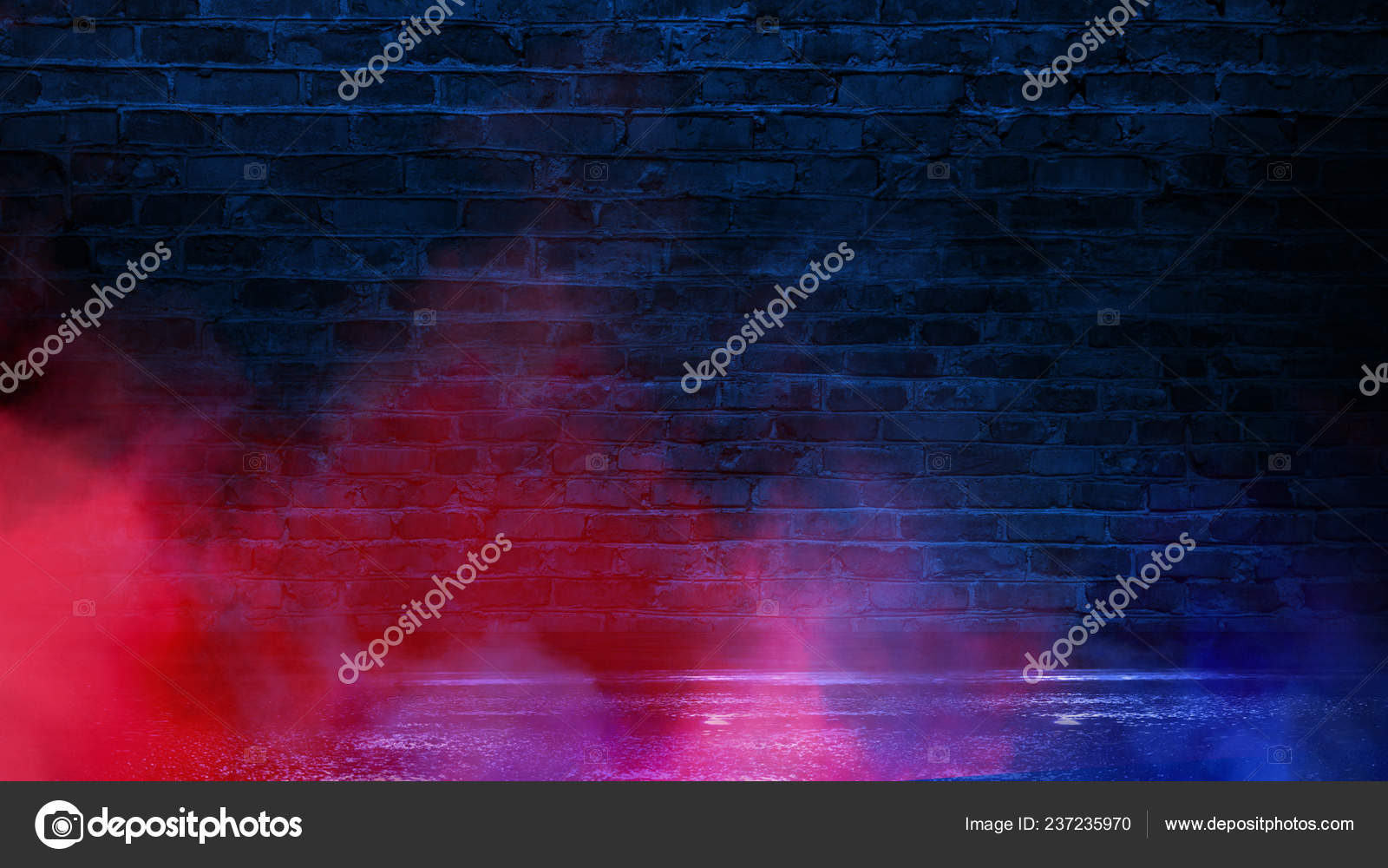 Ziegelmauer Neonlicht Rauchen Leeren Dunklen Hintergrund Mit