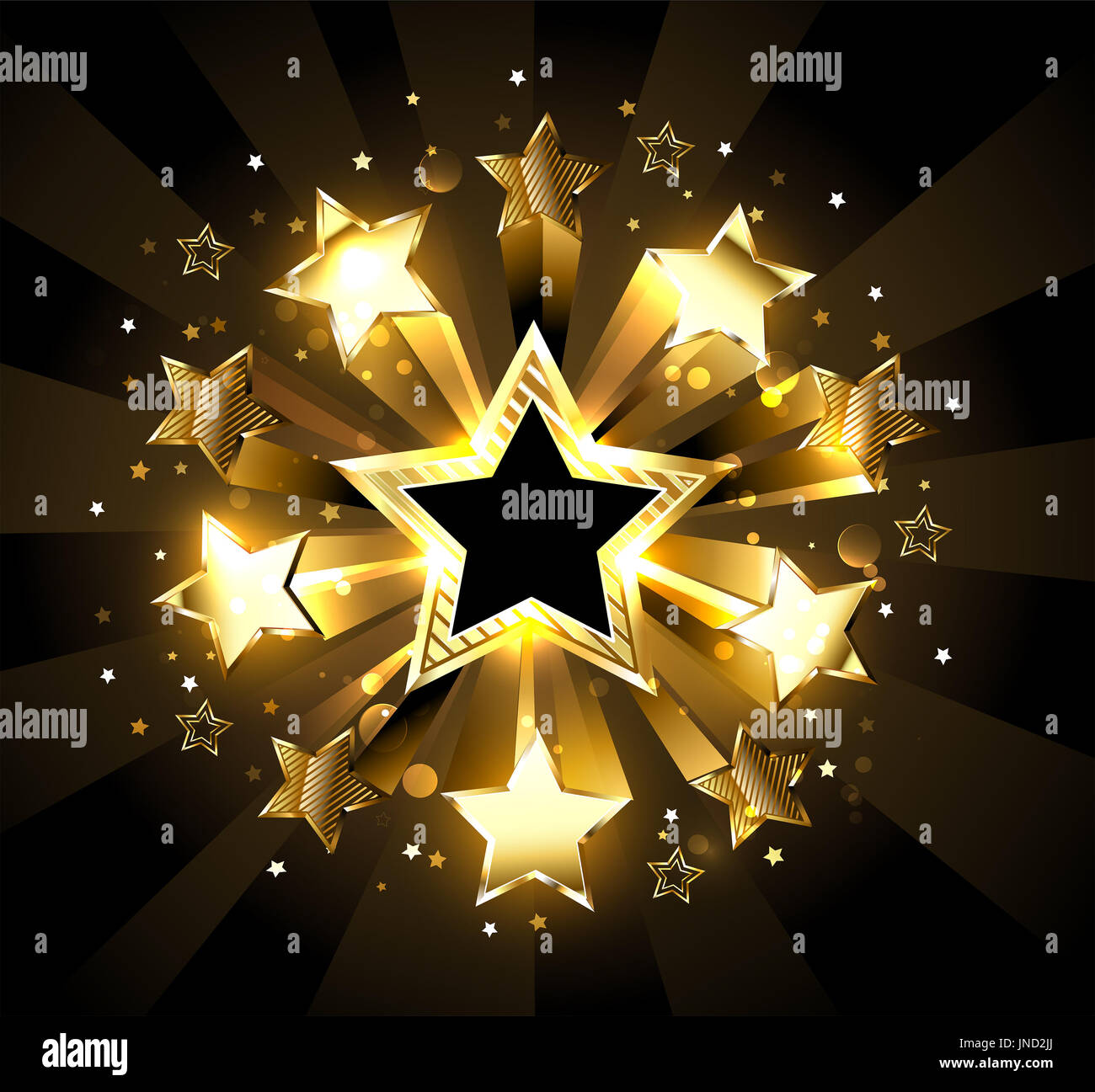 Fünf Glänzenden Goldenen Sternen Mit Einem Goldenen Band Auf