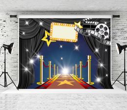Traum 7x5ft Bühne Roter Teppich Fotografie Hintergrund Goldene Sterne Zaun Dekor Schwarz Vorhang Foto Hintergrund Für Kino Thema Party Schießen Prop