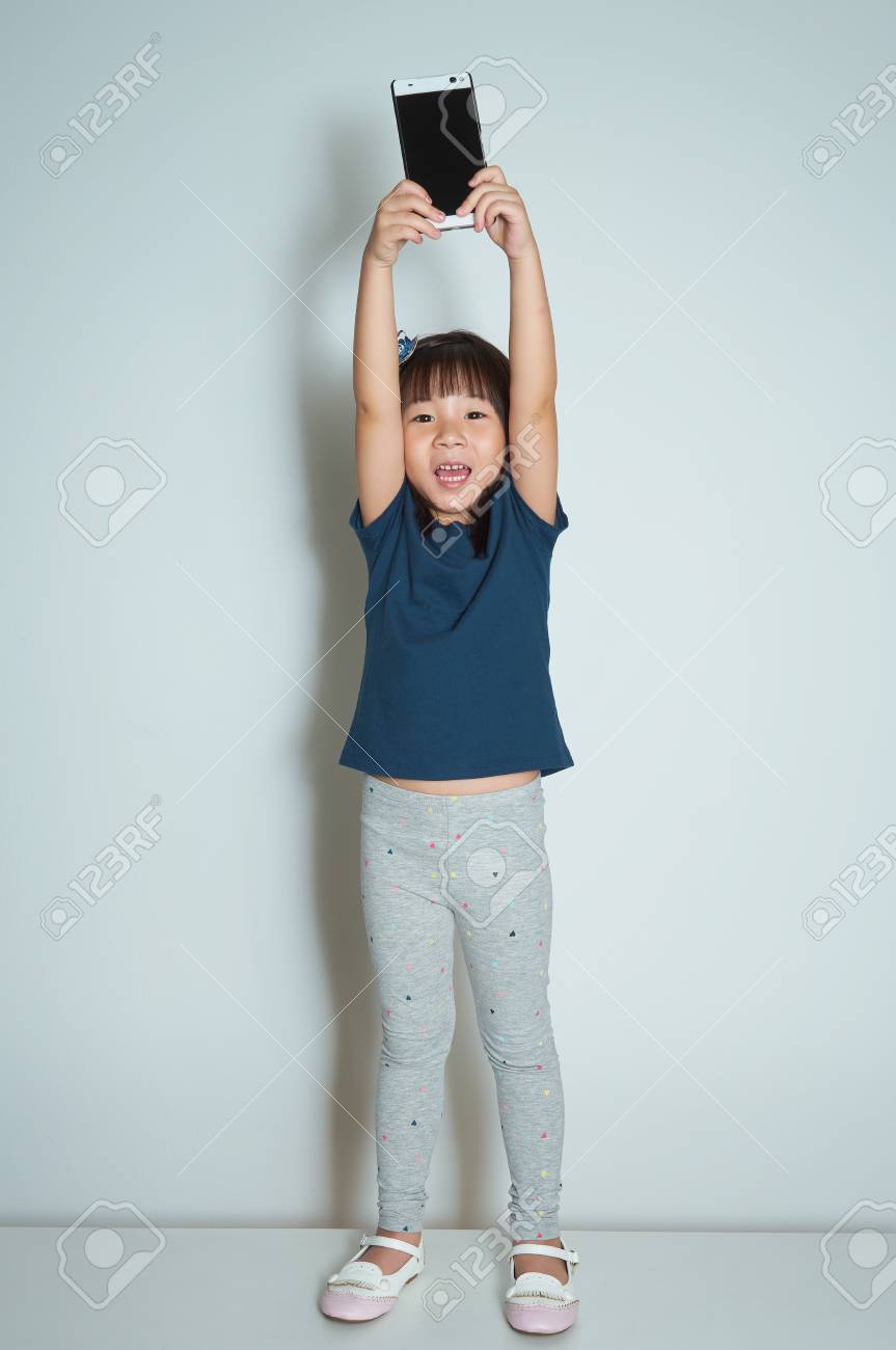 Mädchen Das Handy Auf Der Couch Spielt Kniend Mädchen Handy