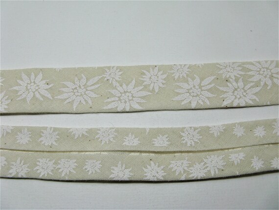 Band Gedruckt Durch Weiße Edelweiss Blumen Hintergrund Ecru Gefaltet Breite 20mm