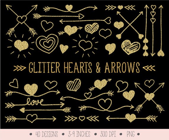 Gold Glitter Herzen Und Pfeile Clipart Valentinstag Doodle Pfeile Herzen Handgezeichnete Stammes Pfeile Goldenes Herz Pfeil Clipart 0007